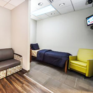 Our patient rooms are designed to make your child’s stay as comfortable as possible. Each room is decorated in a soothing color and a sleeping area for the parent/caregiver is provided. Additionally, every room is equipped with a television, WiFi and DVD players. -