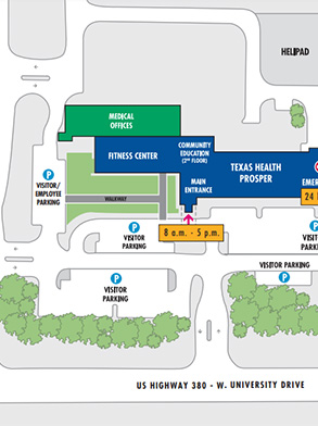 Free parking is available on the Texas Health Prosper campus for all patients and visitors.