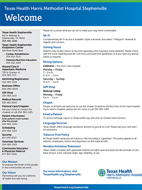 Free parking is available for all patients and visitors on the Texas Health Harris Methodist Hospital Stephenville campus.